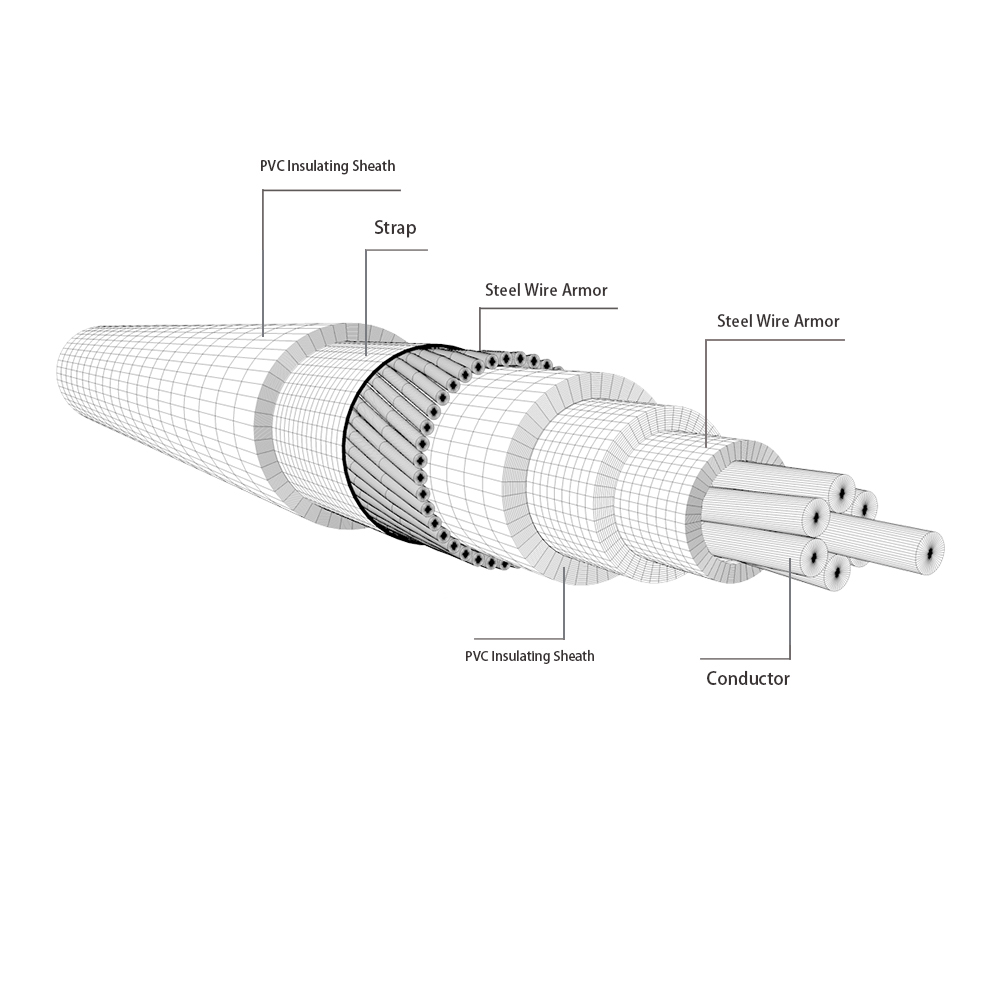The conductor of the cable is a stranded copper conductor, the insulation is a thermosetting insulation, and a PVC sheath. The number of cores can be 1 core, 2 cores, 3 cores, 4 cores, 5 cores.
