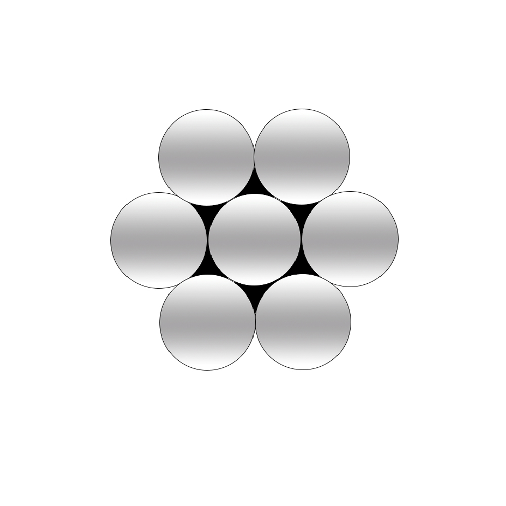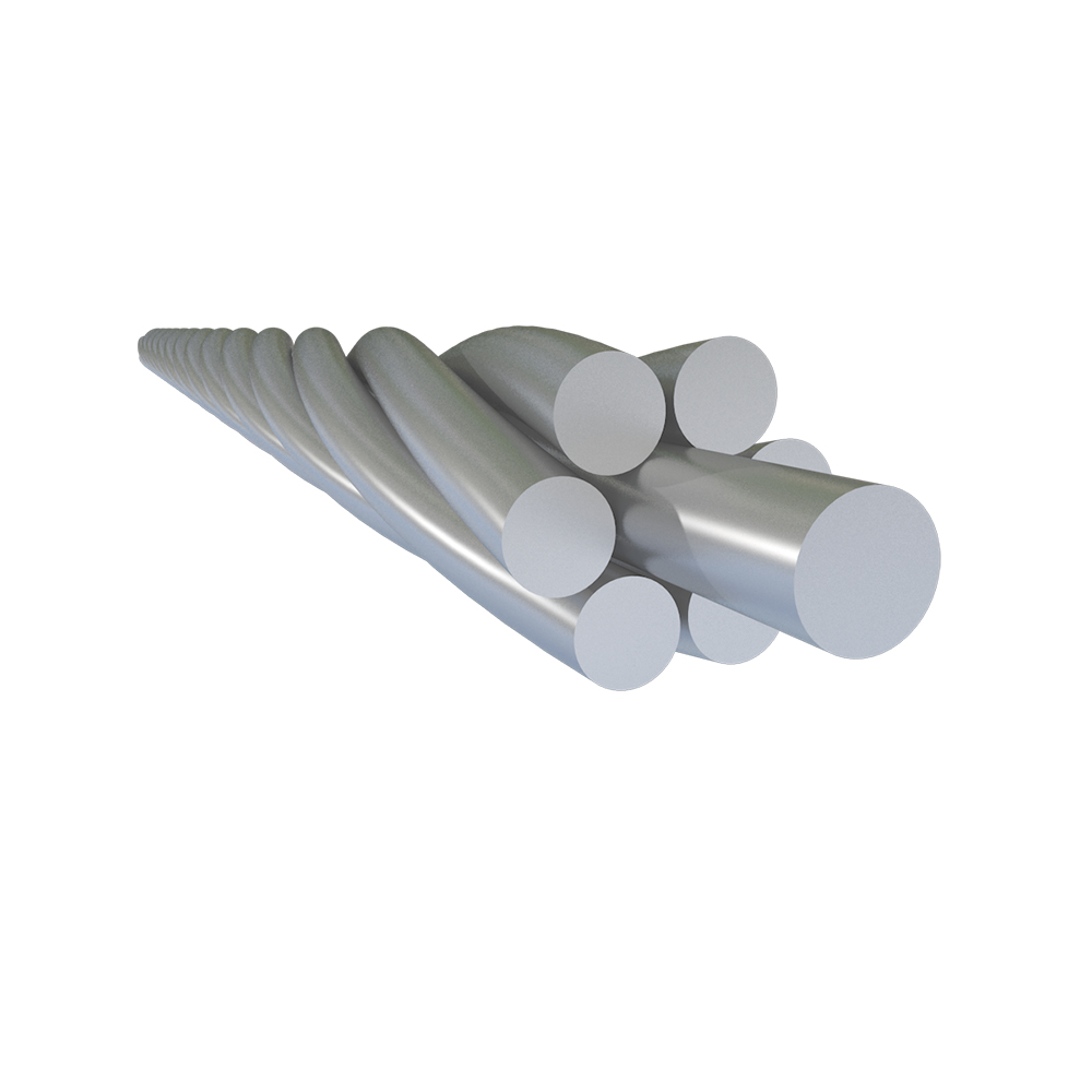 Concentrically stranded galvanized steel wire strand. The structure has 1×7, 1×19 and 1×37 strands.